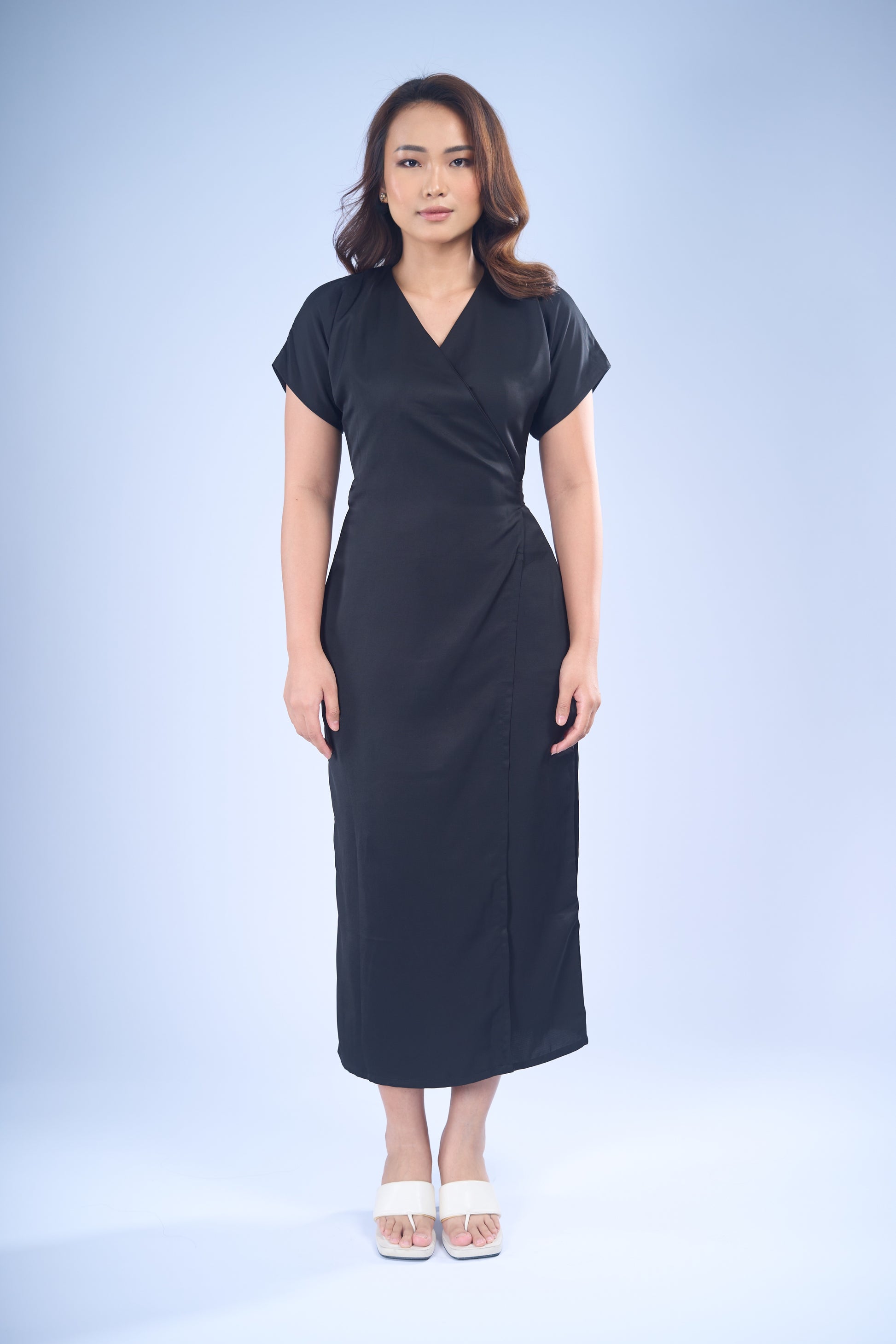 Its classic wrap design gently accentuates your silhouette, offering a look that's as versatile as it is refined. Whether you're headed to a casual brunch or a sophisticated evening event, Luna lets you embrace effortless elegance every day.